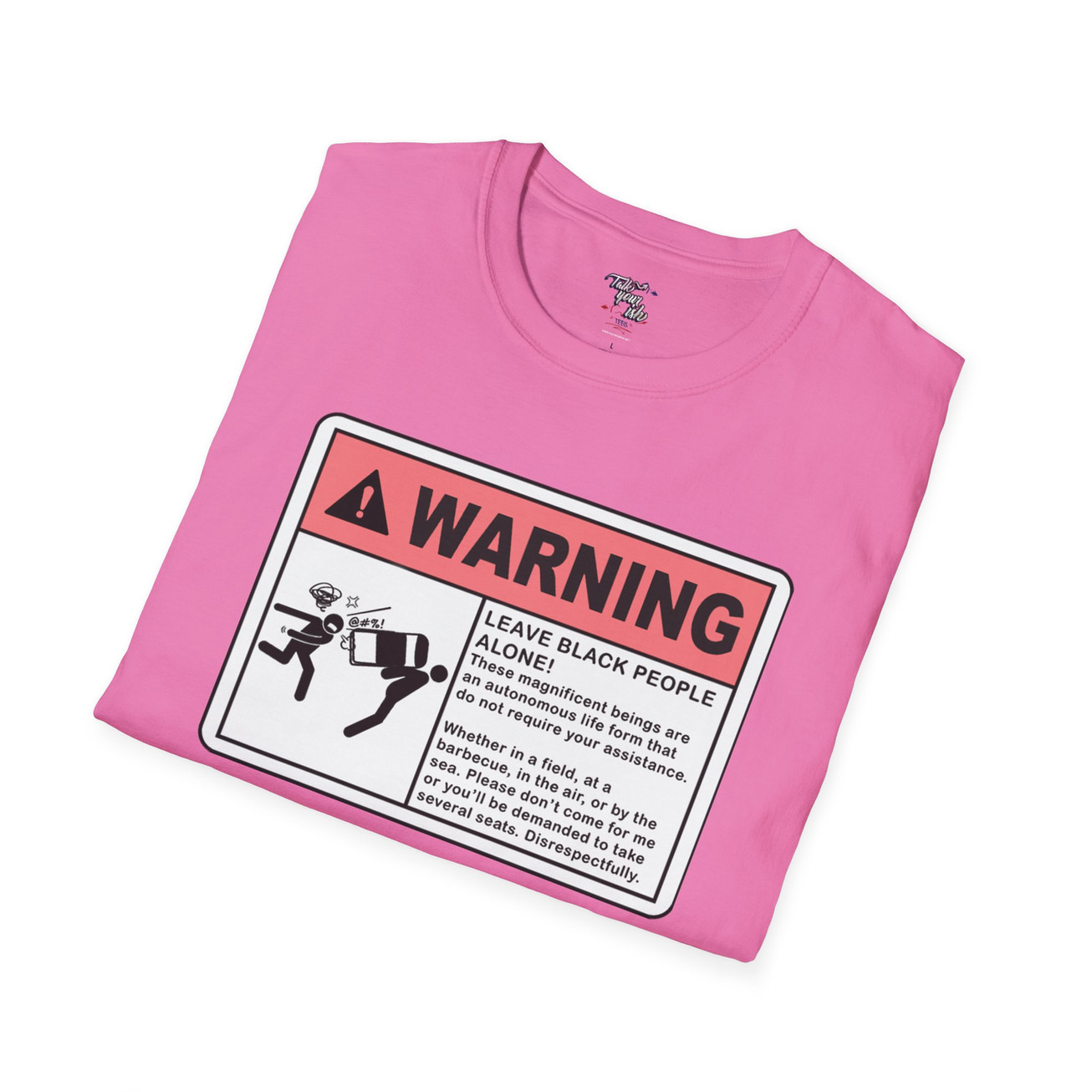 Warning. Leave Black People Alone. Unisex Softstyle T-Shirt (pink)